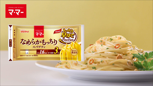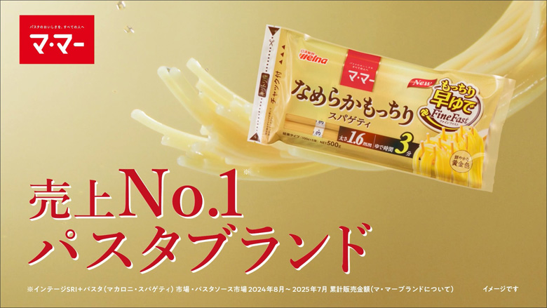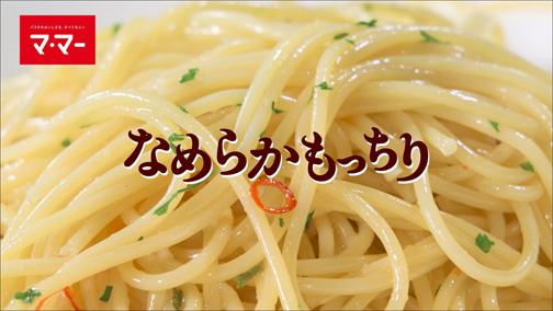 本CMでは、パスタカテゴリーNo.1※1の「マ・マー」ブランドから、「パスタのおいしさを、すべての人へ。」というブランドコンセプトのもと、“なめらか”で“もっちり”とした「マ・マー なめらかもっちり早ゆでスパゲティ」の魅力を訴求しています。