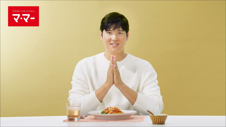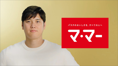 後半には大谷選手が再び登場し食卓の前で“いただきます!”と一言。満足げな表情を浮かべながら「マ・マー」ブランドのおいしさをお伝えしていきます。
