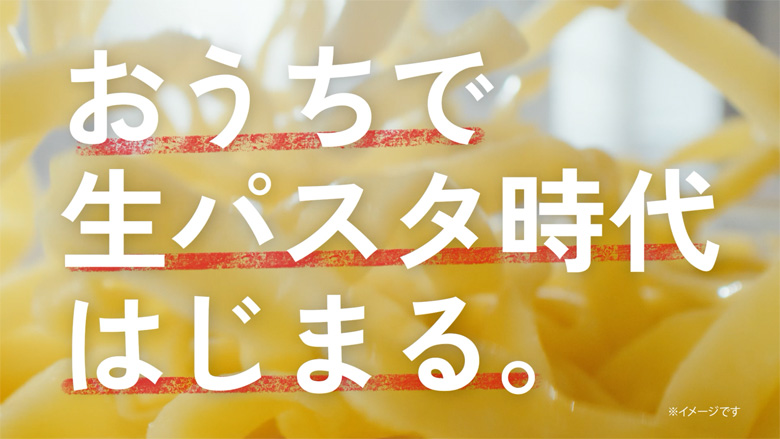 生パスタならではのもちもちとした食感を表現したダイナミックな映像で印象付け、「おうちで生パスタ時代」の始まりを大谷選手と力強く表現しています。