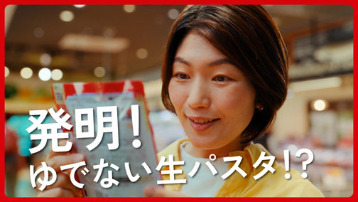 CM内では、「パスタのおいしさを、すべての人へ。」という「マ・マー」ブランドのコンセプトを軸に、常温・冷凍の両カテゴリーで、もちもち食感の“生パスタ”が登場したことを紹介しています。