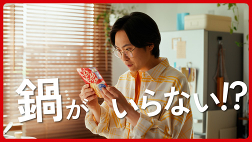 CM冒頭では、「マ・マー」のブランドカラーである赤色を基調とした世界観の中に大谷選手が登場します。生パスタならではのもちもちとした食感を表現するダイナミックな映像とともに、「おうちで生パスタ時代はじまる。」と、家庭用パスタ市場での“新時代の幕開け”を宣言します。最後には、「マ・マー」の常温・冷凍の両カテゴリーからそれぞれ新発売したもちもち食感の“生パスタ”、「もちもち生パスタ」シリーズを印象的に訴求しています。