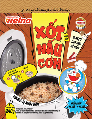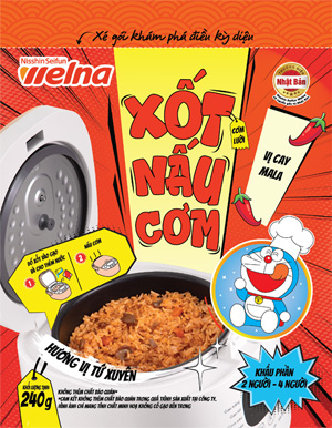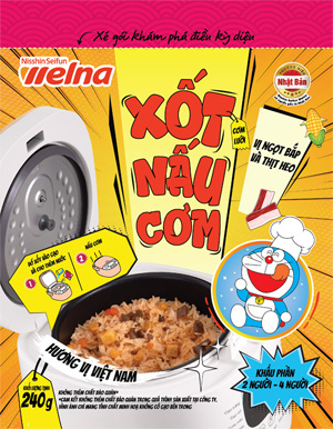 炊飯器でお米と一緒に炊くだけで、簡単においしい炊き込みご飯が作れるレトルトソースのパウチ食品です。昨年発売した「さつまいもとコーン味」と「豚肉とマッシュルーム味」をリニューアルするとともに、新製品として「麻辣風味」が登場します。また今回から、ベトナムでも大人気の「ドラえもん」のキャラクターをパッケージに採用し、子どもから大人まで、誰もが手に取りたくなるような楽しいデザインに仕上げました。