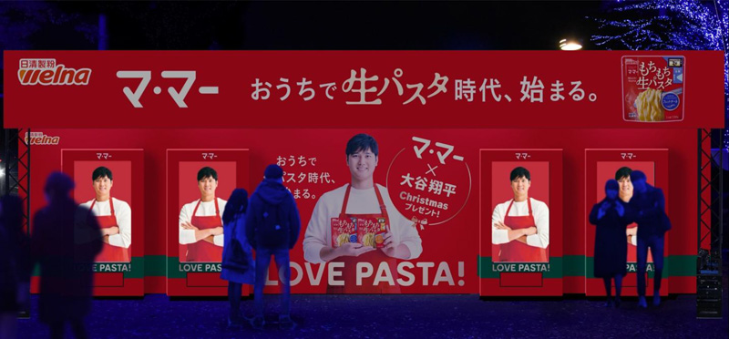 日清製粉グループの株式会社日清製粉ウェルナ(取締役社長:岩橋 恭彦)は、「マ・マー レンジで2分 もちもち生パスタ」のプレゼント企画「PRESENT From OHTANI-SANTA」を、当社が特別協賛するイルミネーションイベント『青の洞窟 SHIBUYA』の会場内で実施します。