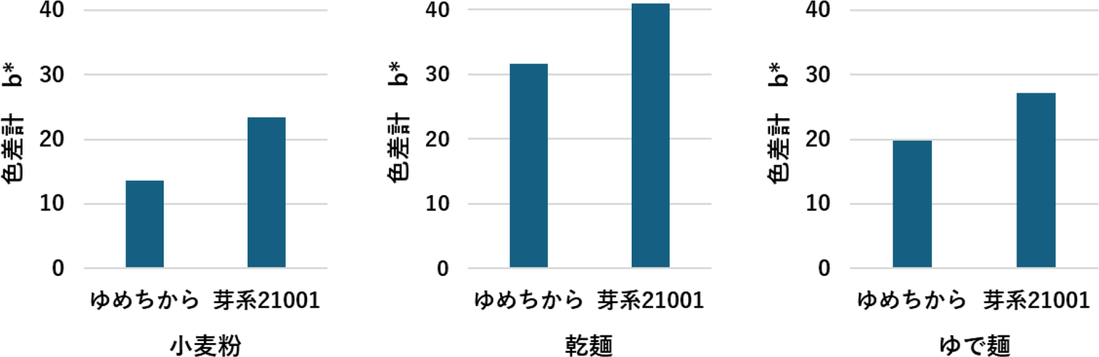 図3.「ゆめちから」および「芽系21001」の黄色み(b*) |