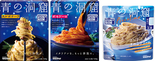 これまでの「青の洞窟」ブランドの世界観や本格的な味わいはしっかりと受け継ぎつつ、パスタソース製品のレンジ対応化や品質改良、生パスタの新シリーズ発売等、日本におけるイタリアンのイメージ変化に合わせて味わいやラインアップを強化し、パスタの楽しみ方をさらに広げます。新しくなった「青の洞窟」は、これからも確かな価値をお届けするブランドとして進化し続けます。