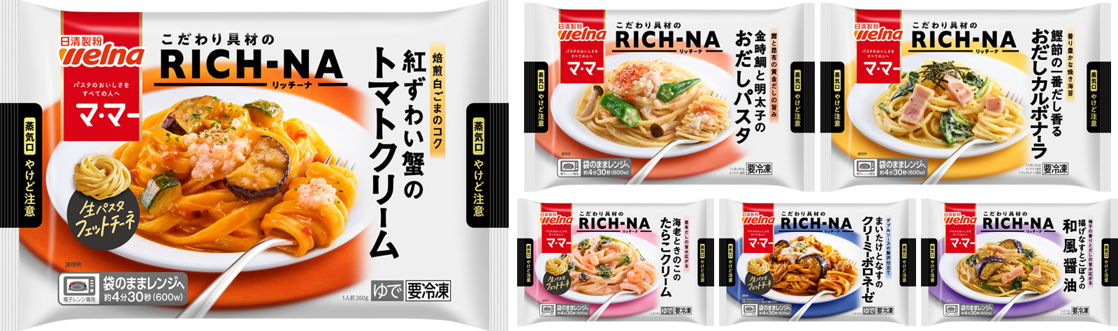 「マ・マー RICH-NA(リッチーナ)」は、具材・ソース・麺にこだわり、“お店のようにリッチな気分になれる冷凍パスタ”として2025年春に発売して以来、9割以上のお客様からリピート購入のご意向※をいただく好評なシリーズとなっています。